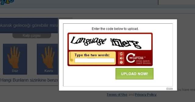 Ýki kelimeyi doðru olarak girdiyseniz, UPLOAD NOW butonuna basýn.